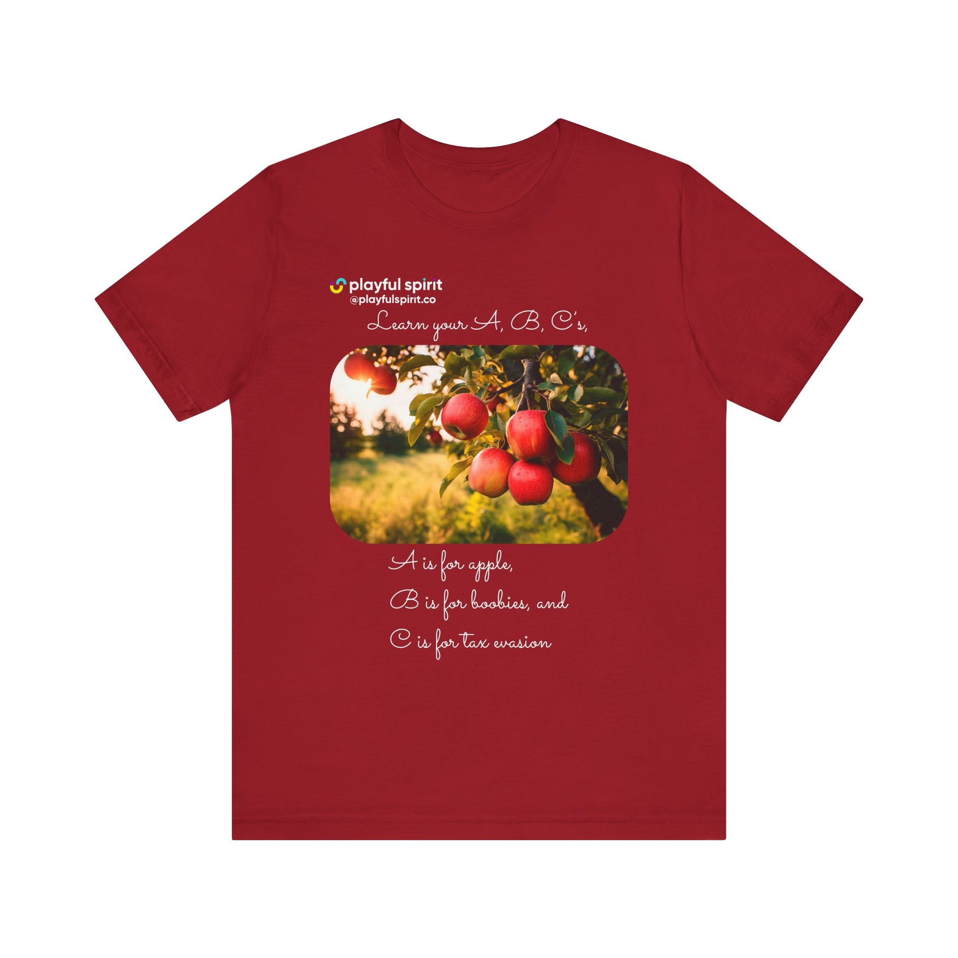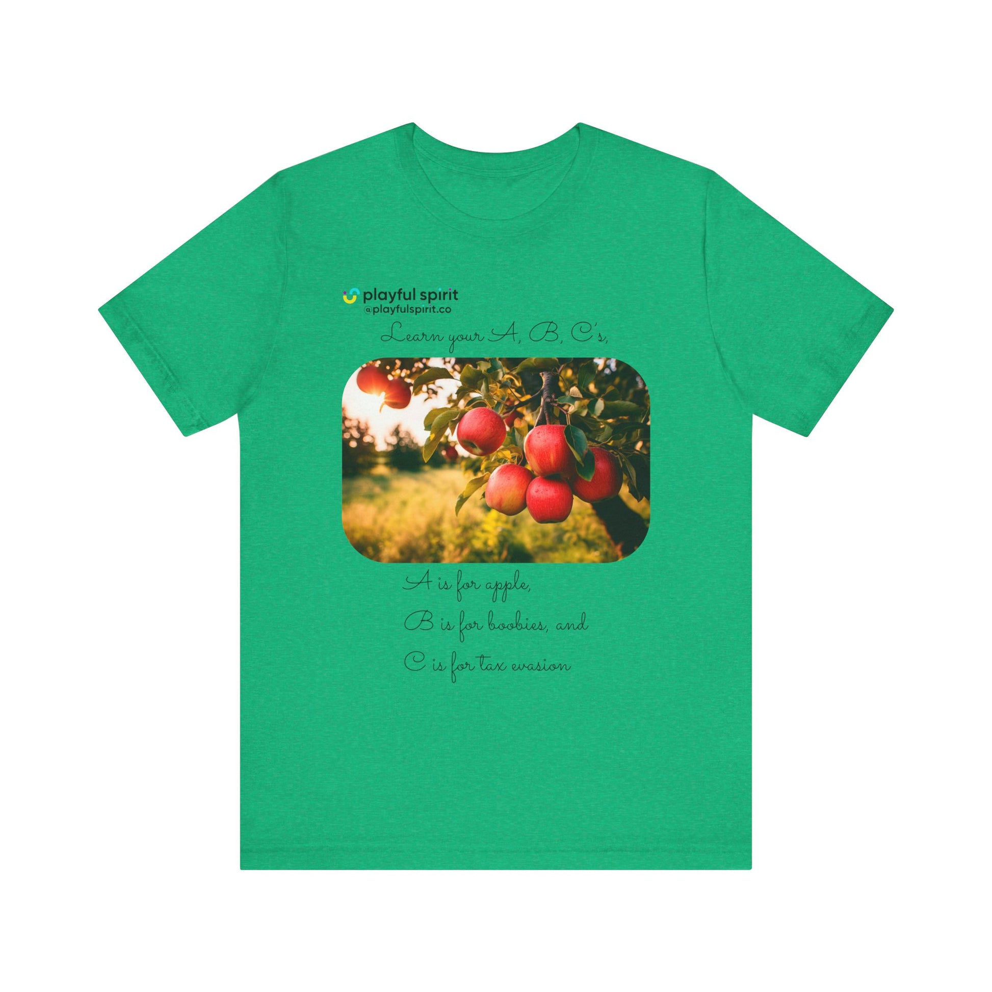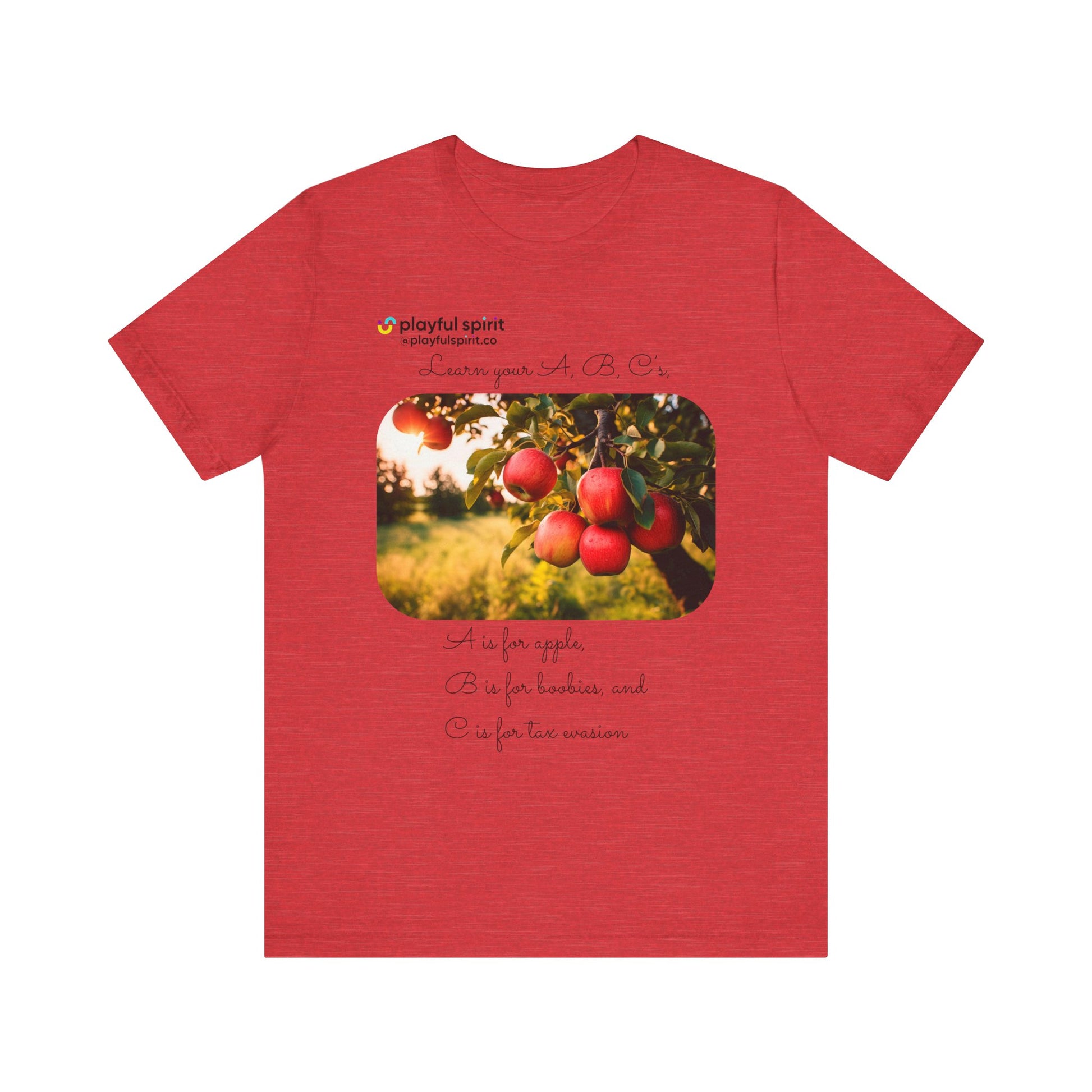 Learn your A, B, C’s, A is for apple, B is for boobies, and C is for tax evasion | Shirt