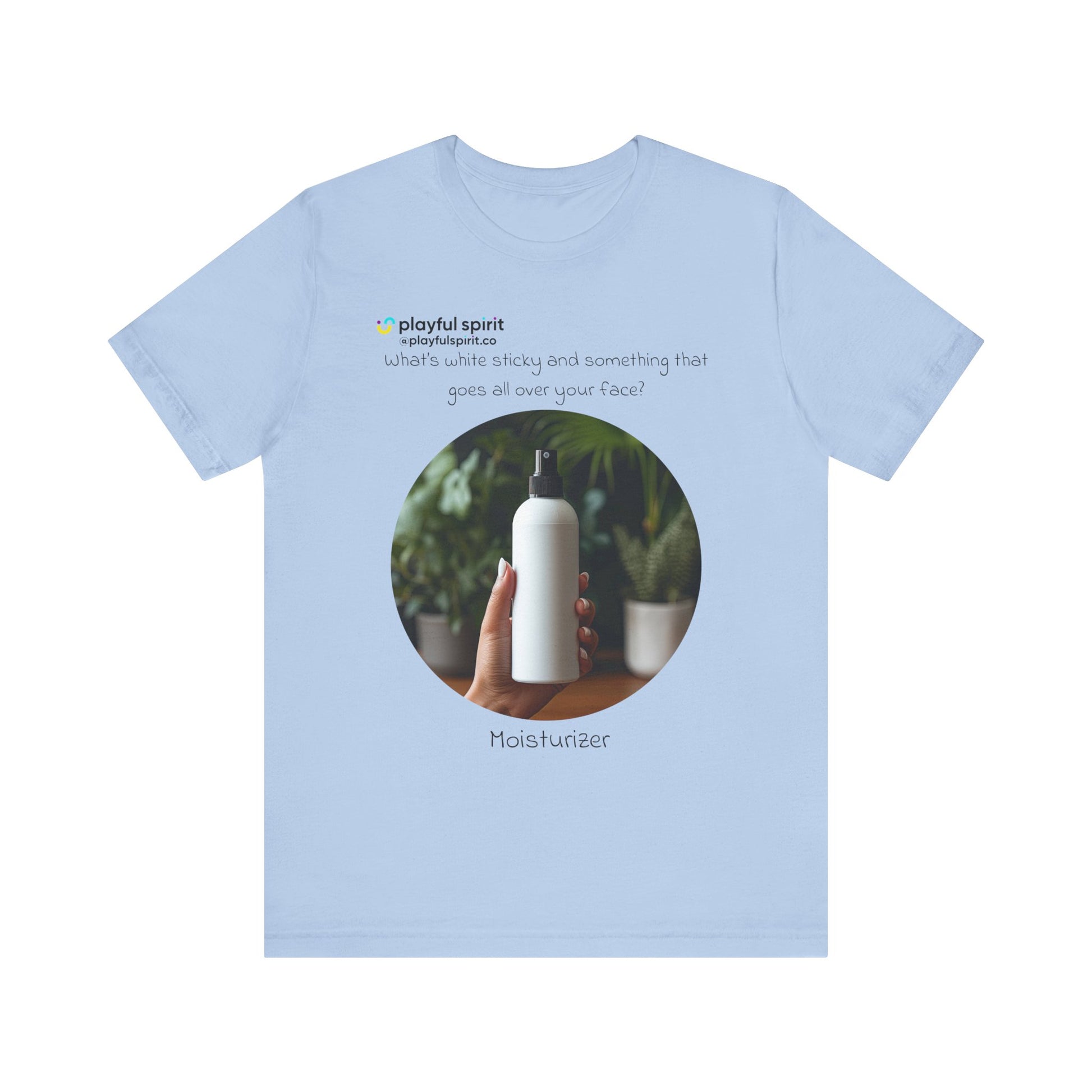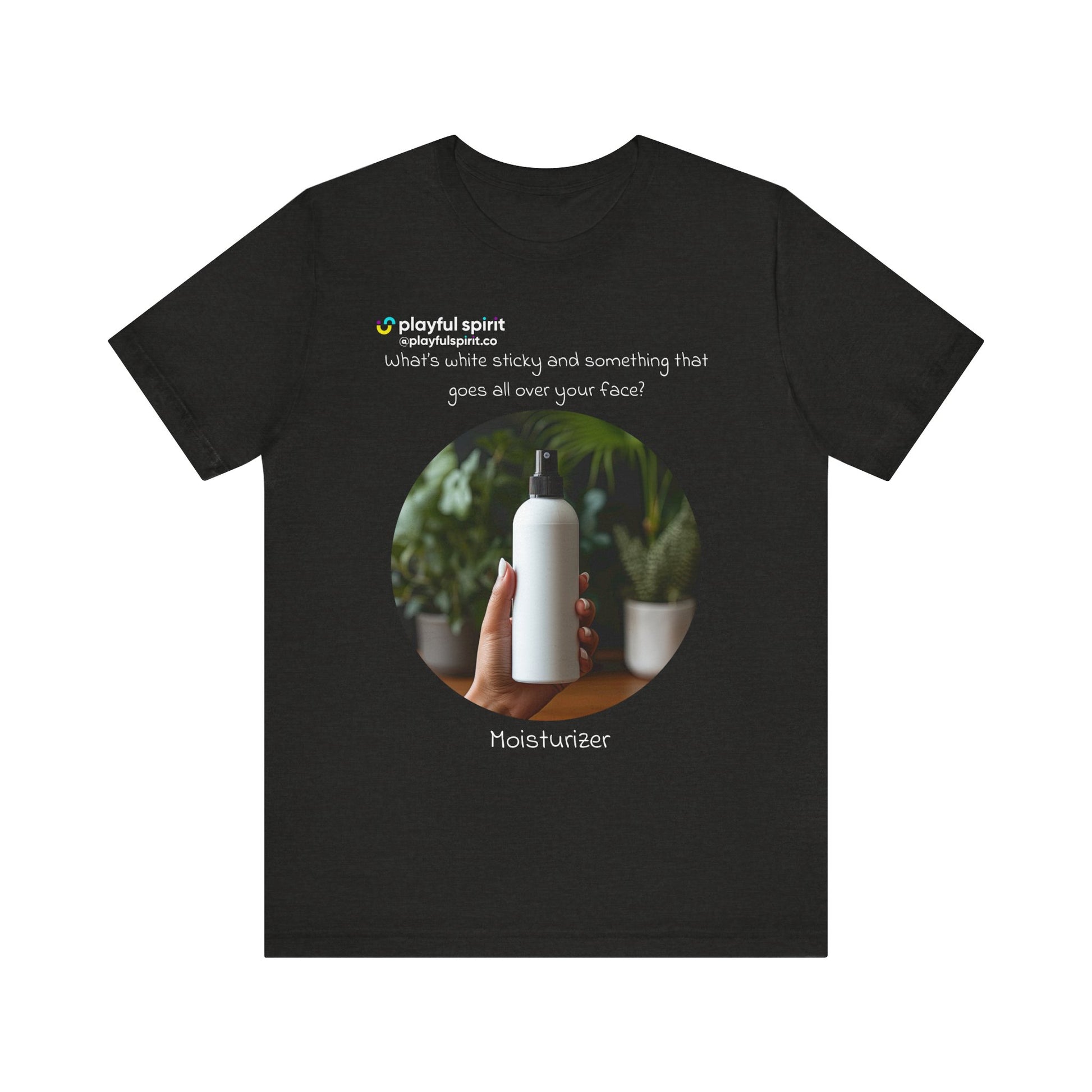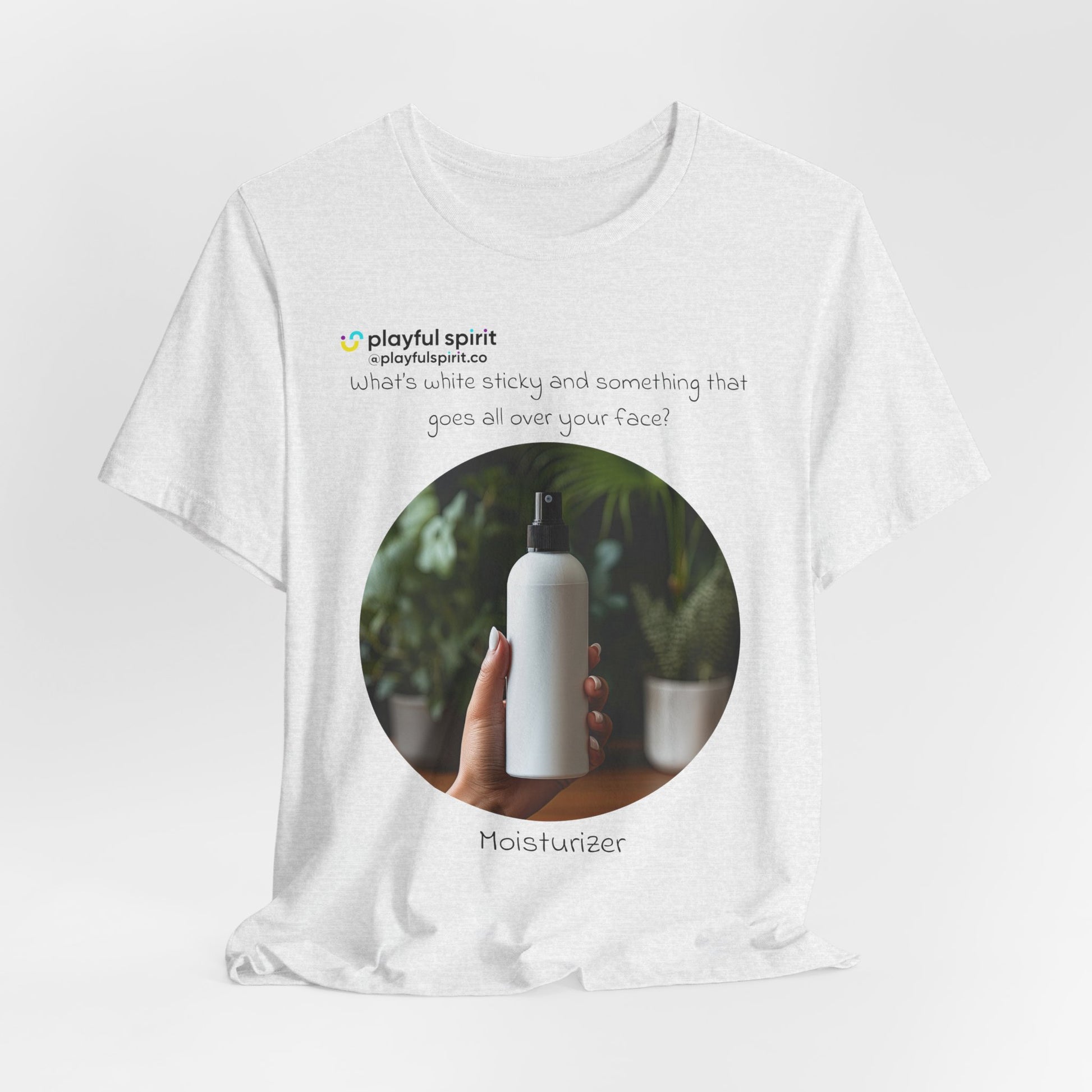 What’s white sticky and something that goes all over your face? Moisturizer | Shirt