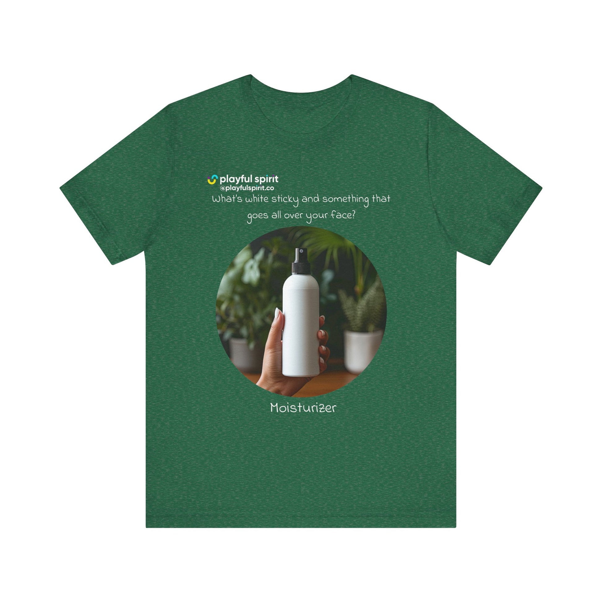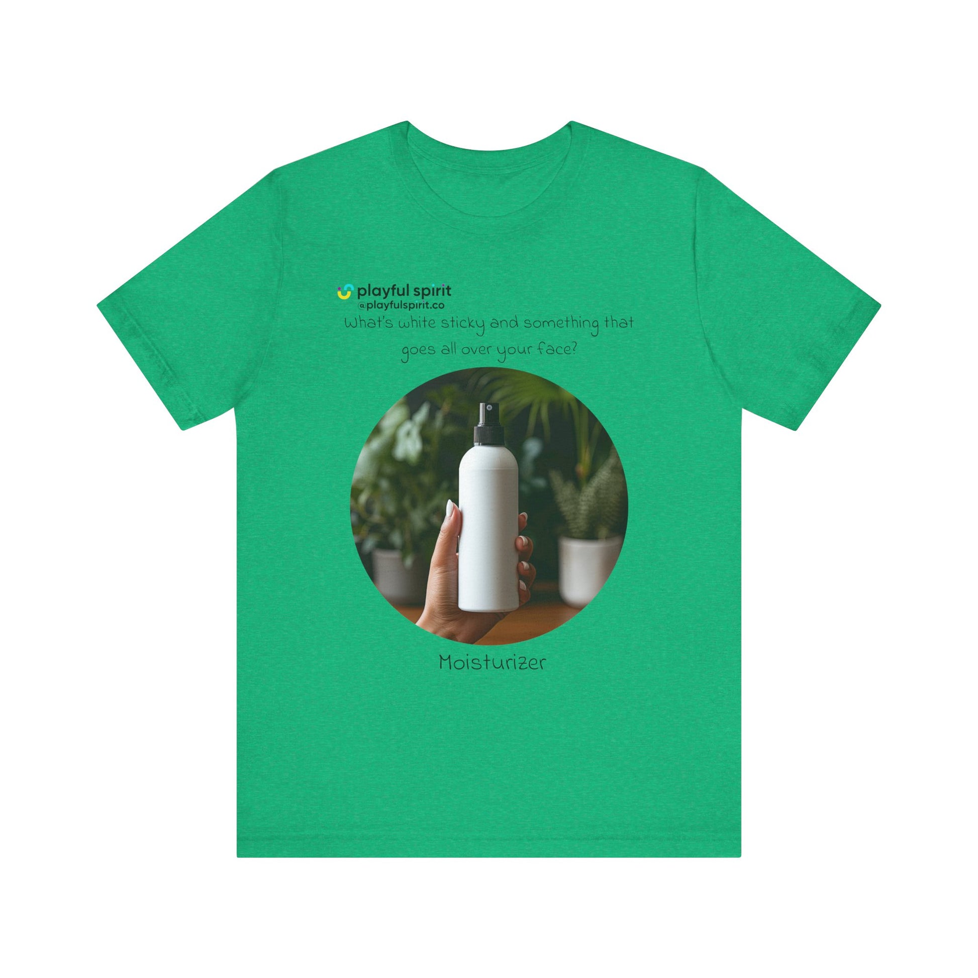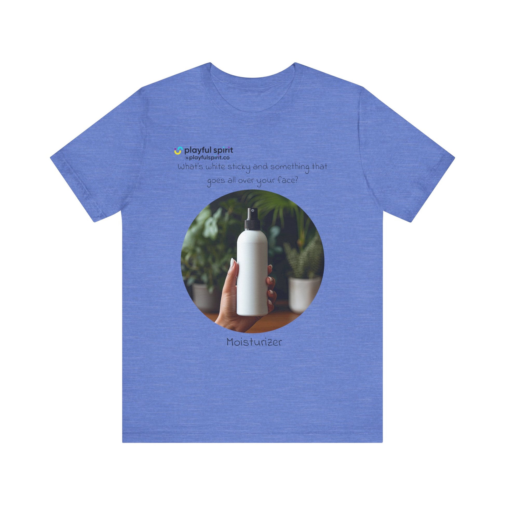 What’s white sticky and something that goes all over your face? Moisturizer | Shirt
